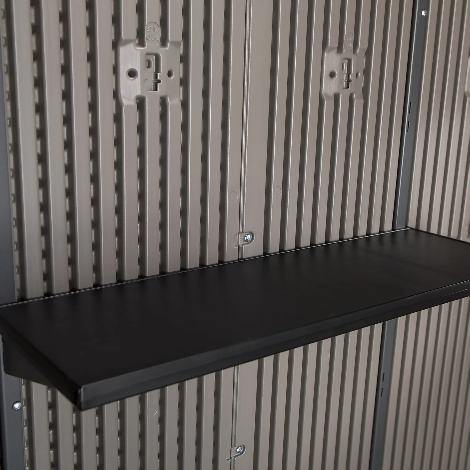 Lifetime’s 7-foot wide Outdoor Storage Sheds have several innovative features, including a skylight that runs the entire length of the roof to maximize natural lighting. They also include single-hinged double doors that open nearly 180 degrees and lock closed, a slip-resistant polyethylene floor, and low-maintenance, steel-reinforced construction.