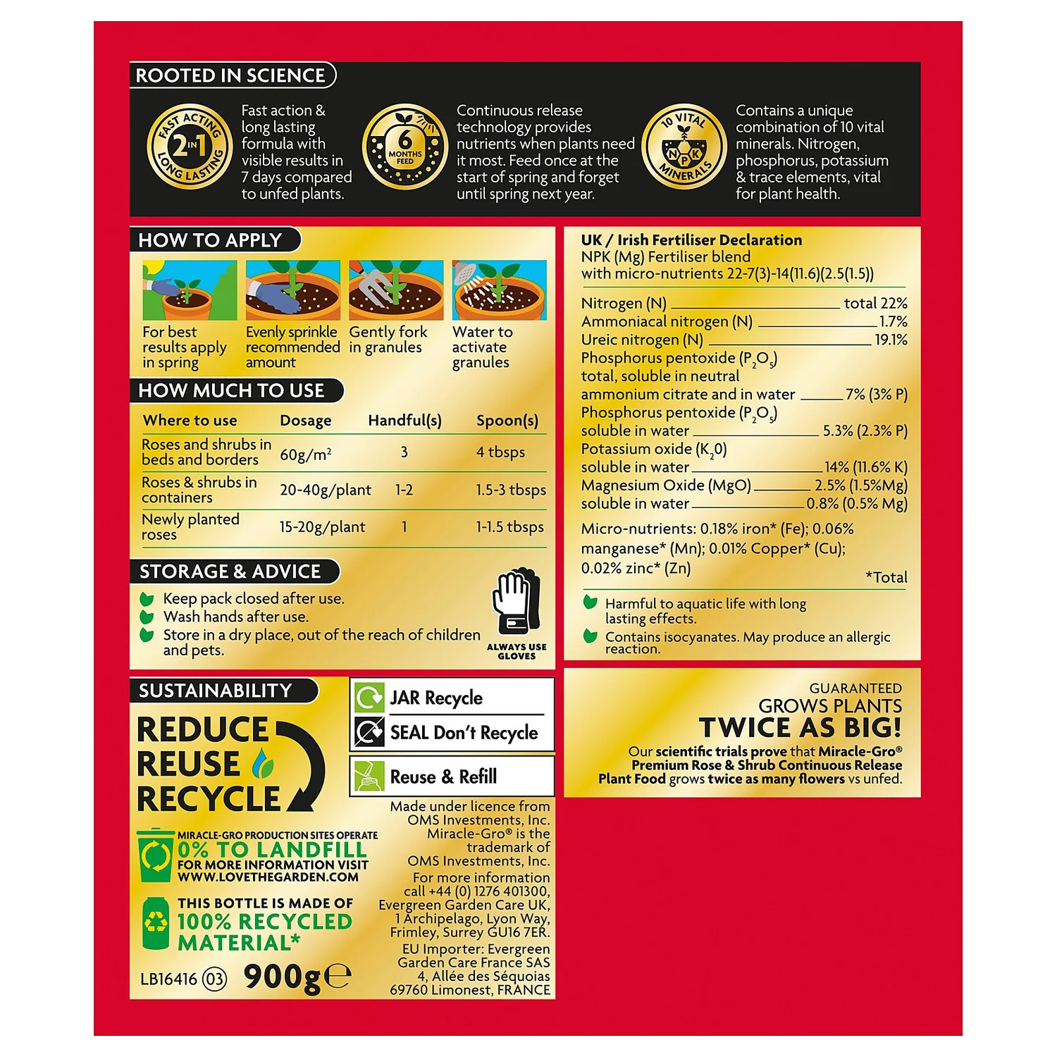 Miracle-Gro® Premium Rose & Shrub Continuous Release Plant Food - 900g - Image 2